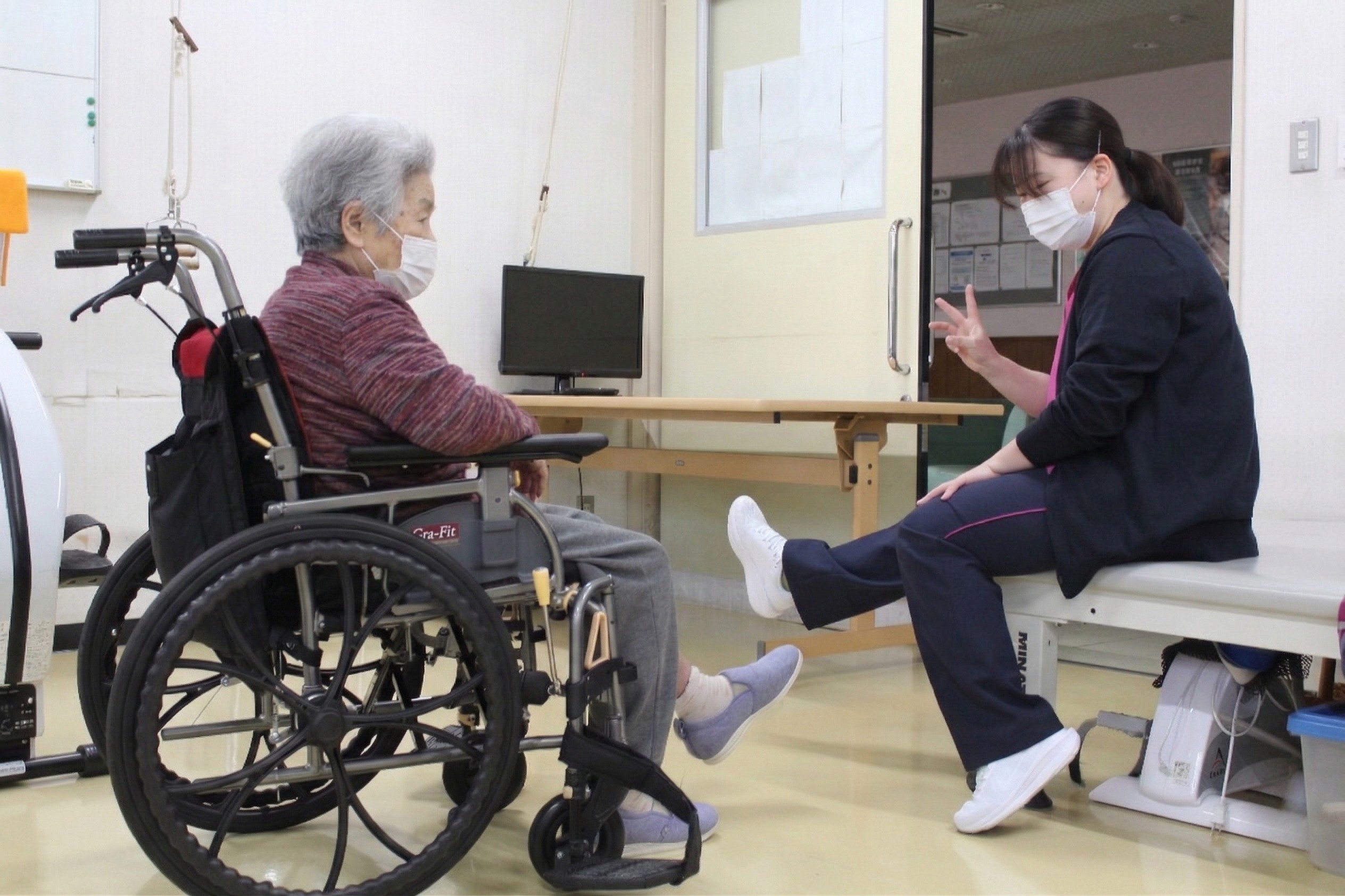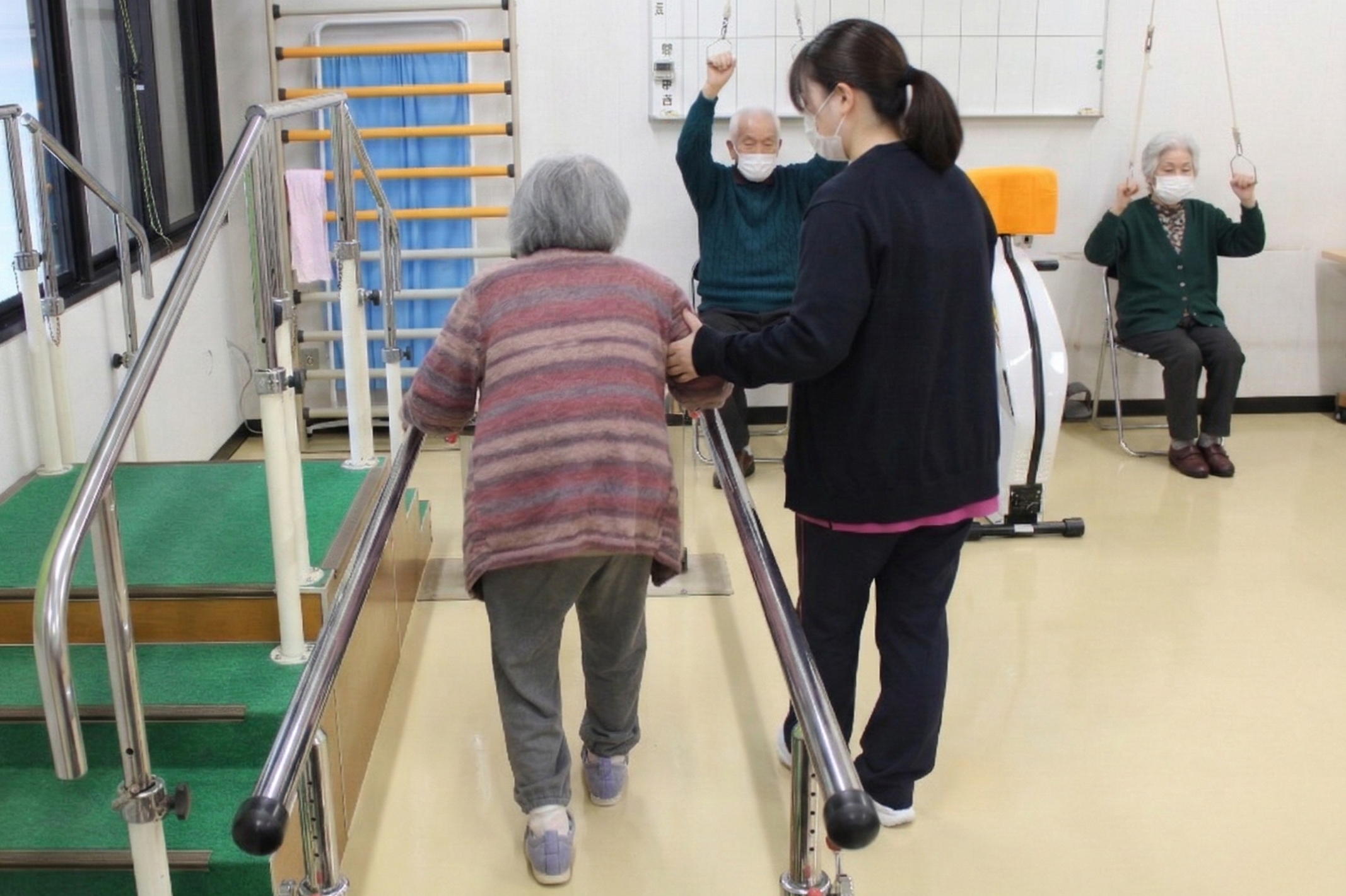 「一人で歩けるようになりたい」「階段を楽に登りたい」など、お一人おひとりの目標に合わせたオーダーメイドのリハビリを行います。