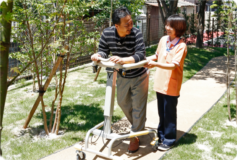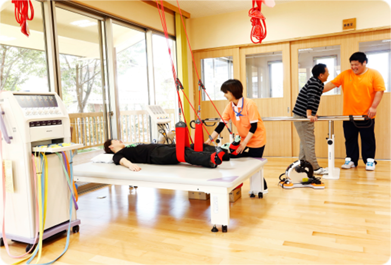 特にリハビリに力を入れており、高齢者の方の介護予防運動に必要なプログラムをご提案し健康的に過ごせる日々のお手伝いを致します。
